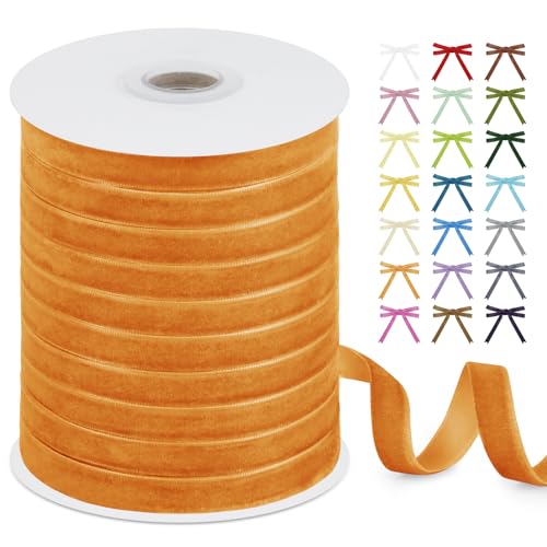 Uiopa Samtband Orange 10mm Breit, 9m Geschenkband Samt Band, Schleifenband Orange Ribbon Dekoband für Geschenkverpackung, Kränze, Hochzeit, Party, DIY Handwerk