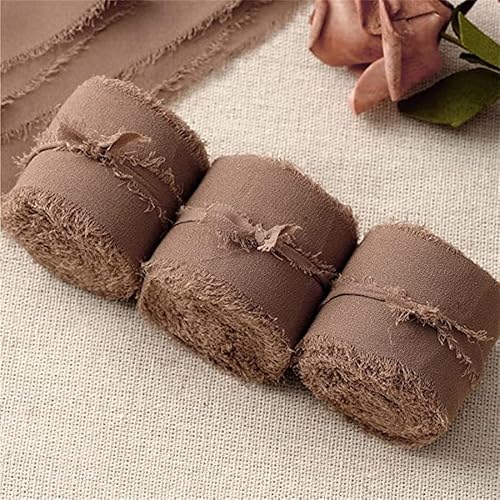 GreatRise 4 cm* 5 Meter Chiffonband Fransenband Baumwolle Schleifenband Geschenkband Stoffband Dekoband Fransen Band für DIY Handwerk Geschenkverpackung Sträußen Hochzeit Dekoration Dunkler Kaffee