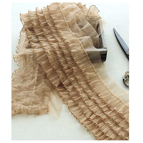 SHTGOI 1 Meter 5 Schichten Plissiertes Chiffon Rüschen Trim Band Tüll Spitze Chiffonband Handarbeit Chiffon Spitzenbesatz für Kleid Kragen Manschetten Nähen DIY Handwerk Applikationen Khaki