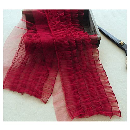 SHTGOI 1 Meter 5 Schichten Plissiertes Chiffon Rüschen Trim Band Tüll Spitze Chiffonband Handarbeit Chiffon Spitzenbesatz für Kleid Kragen Manschetten Nähen DIY Handwerk Applikationen Rotwein