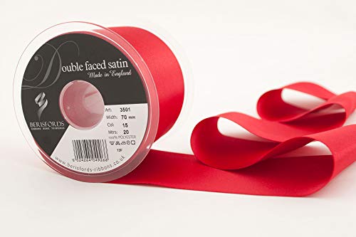 Berisfords 3501 Doppelseitiges Satinband, 20 m x 70 mm, Hochzeitsweiß
