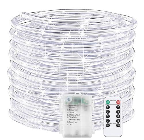 DINOWIN LED Schlauch Lichterkette Batterie Wasserdicht Lichterkette Draht mit Fernbedienung 8 Modi und Timer Lichtschlauch für Innen Außen Zimmer Party Garten (Weiß, 10M 100LED)