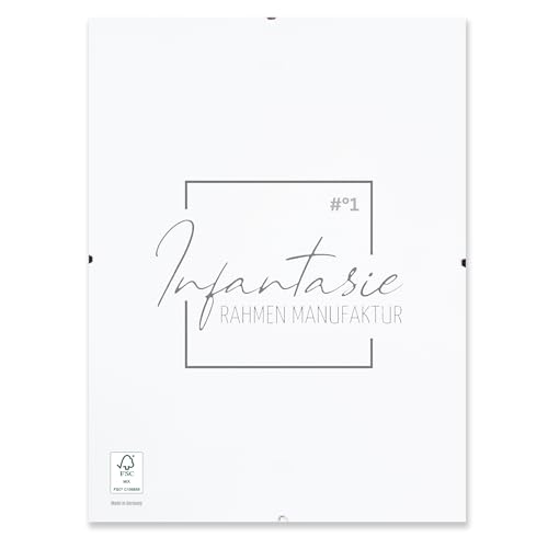Infantasie 'N°1' Rahmenloser Bilderrahmen Cliprahmen 33x43 cm | Moderner Bildhalter für stilvolle Gallerie Präsentationen mit weiß laminierter MDF-Holz Rückwand und Acrylglasscheibe