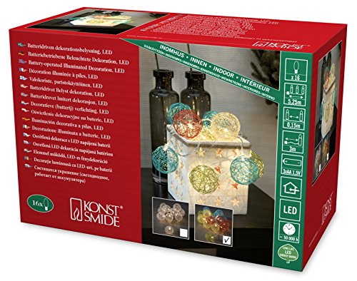 Konstsmide LED Dekolichterkette, bunte Aluminium-Drahtkugeln, groß, 16 warm weiße Dioden, batteriebetrieben, Innen, transparentes Kabel, 3 x AA 1.5V (exkl.) - 3148-503