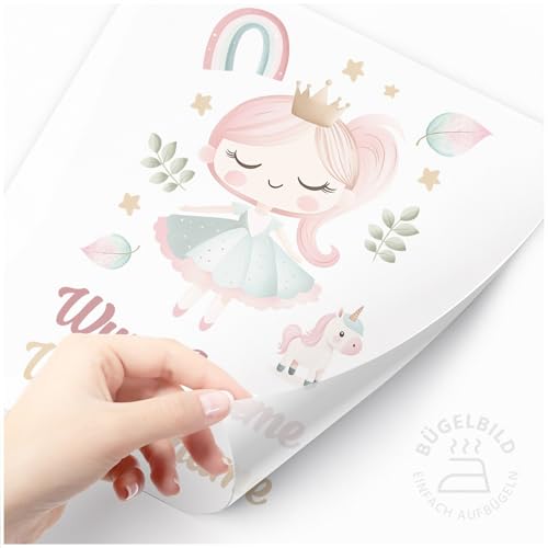 Moonworks® Bügelbilder Set für Kinder Personalisiert Prinzessin Einhorn Wunschname Patches zum Aufbügeln auf Textilien Prinzessin weiß standard