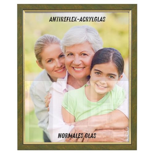 NB Akzent Bilderrahmen mit Antireflexglas – 50x60 cm Gold gewischt - MDF Holz Fotorahmen Bellevue