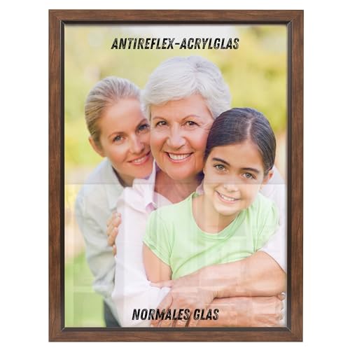 NB Akzent Bilderrahmen mit Antireflexglas – 80x100 cm Nussbaum - MDF Holz Fotorahmen Bellevue