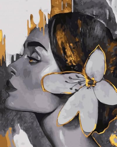 Oh Art! Malen Nach Zahlen Erwachsene Set Mit 3 Pinseln Und Acrylfarben Gemälde Acrylic Malerei DIY Leinwand 40 x 50 cm Junges Mädchen Mit Blumen