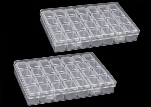 Diamond Painting Aufbewahrungsbox, Diamond Painting Zubehör Boxen, Kunststoff Diamant Stickerei Box, Diamant Stickerei Sortierbox für kleinteile Storage Box Accessory Boxes (28 Fächer,2 Stück)