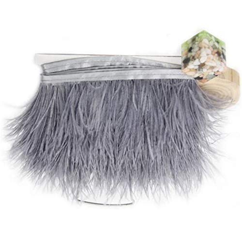 RAILONCH 2 Meter Lang 10 Meter Breit DIY Straußfeder Satinband Band Fransen Straußenfedern Borte Nähen für Straußenfeder Handwerk Kostüme Dekoration (Grau)