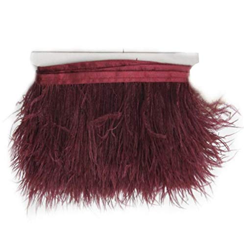 RAILONCH 2 Meter Lang 10 Meter Breit DIY Straußfeder Satinband Band Fransen Straußenfedern Borte Nähen für Straußenfeder Handwerk Kostüme Dekoration (Wein rot)