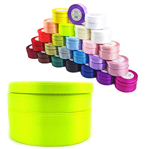 Sepkina Satinband Schleifenband Dekoband Band Bastelband Geschenkband Nähband Zierband Satin Neon Gelb Neongelb 0,32€/M (Neon-Gelb, 25)