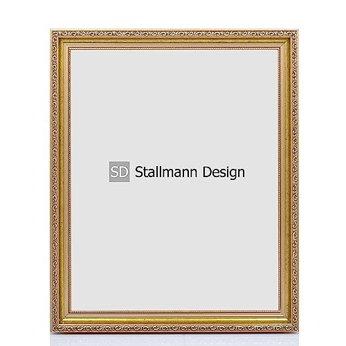 Stallmann Design Barockrahmen “OIA” | 28x35 cm | Gold | Echtholz-Bilderrahmen antik | mit Kunstglas | Fotorahmen aus Holz im Vintagestyle