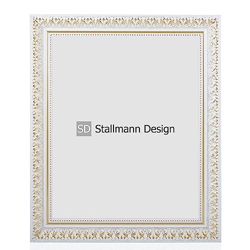 Stallmann Design Bilderrahmen Barockrahmen SWAN | 20x25 cm | Weiß | Echtholz-Bilderrahmen antik | 80 andere Größen verfügbar | Fotorahmen aus Holz im Vintagestyle