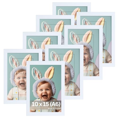 VictoR Bilderrahmen Dali 8er Set 10x15 cm (A6) Weiß - Fotorahmen Holz A6 - Bilderrahmen Set Weiß 10x15 - moderner Holzrahmen mit bruchsicherem Acrylglas
