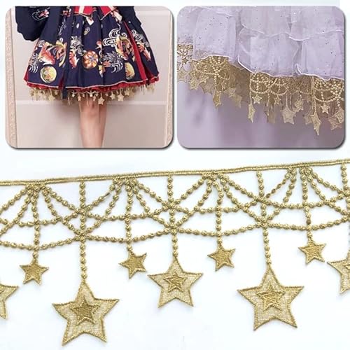 Yulakes 2 Yards Sterne Wasserlösliche Quasten Spitzenborte Besticktes star Quaste Spitzenband Spitzenbordüre Quasten Fransen für Kostüm Heimtextilien Vorhänge Kleidung Nähen (Gold)