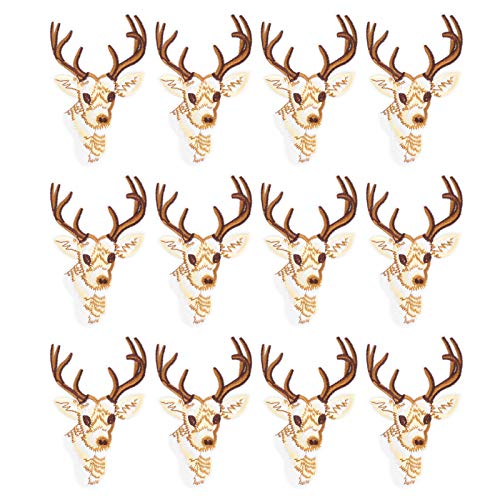 Zerodis 12Pcs Stickerei Stoffaufkleber, Hirschkopf Nähen Eisen auf Patches DIY Motiv Applique Patches für Kleidung Jeans Jacken Schuhe Bags