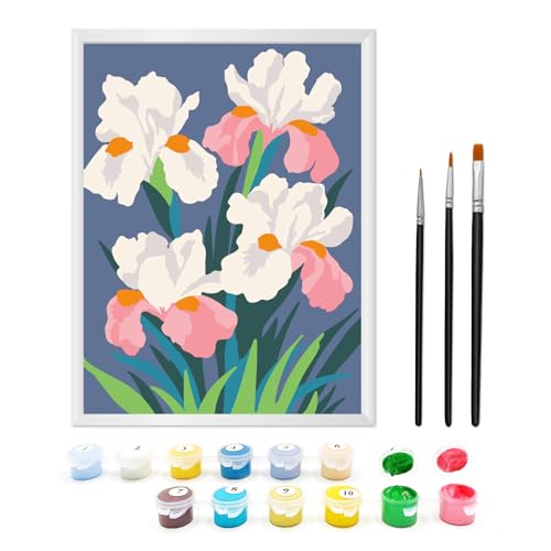 Zimrobin Malen Nach Zahlen ab 5 6 7 Jahre Mädchen und Junge, Malen Nach Zahlen für Kinder mit Rahmen 3 Pinsel und Acrylfarben, 18 X 24cm(Blumenkranz Pferd)