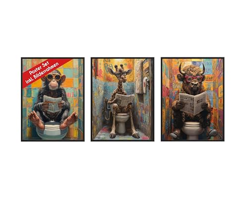 Wackadoo Poster Set WC Tiere 3er Set inklusive Bilderrahmen 30x40 cm Poster Bilderset mit rahmen picture frame Bilder Set Italienisches Holz