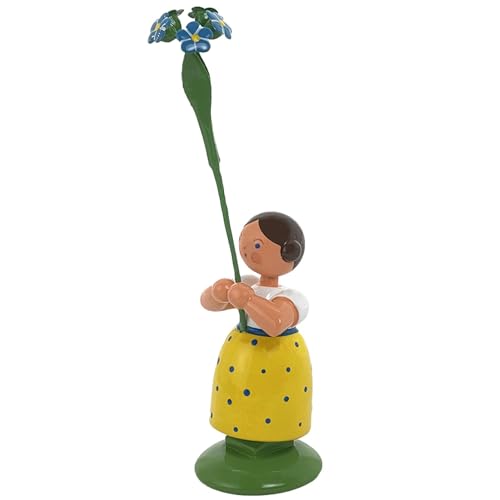 Jan Legler | Wiesenblumenmädchen Blumenkinder | Handwerkskunst aus dem Erzgebirge | Holzfigur Frühlingsdeko | 12 cm | mit Vergissmeinnicht