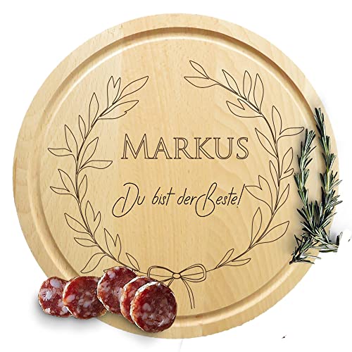 Geschenke für Männer - sinnvolle Männergeschenke zum Geburtstag für Papa gesucht? - Personalisiere Dein Schneidebrett rund - Küchenbrett Holz mit Gravur & Namen - unbehandelt (Der Beste)