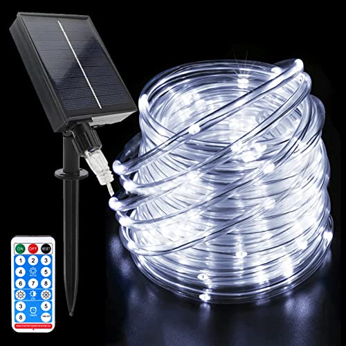 【8 Beleuchtungsmodi】: Unsere LED -Seilleuchten haben 8 verschiedene wunderschöne Beleuchtungsmodi: Glühwürmchen blinkt, Wellen, Verblassen, Jagd/Blinken, Langsamen, Funkeln/Blinken, Kombination und stetig, was verschiedene Atmosphären für Ihr Leben erzeugen kann. 【IP65 wasserdicht】: Unsere LED -Seilleuchten bestehen aus 66 Fuß Kupferdraht, vollständig von klarem PVC -Röhrchen, stark und hitzebeständig und hat eine lange Lebensdauer. Unsere LED -Seilleuchten im Freien können schlechtem Wetter standhalten, wie Regen, Schnee, Extrusion, Kollision usw. geeignet für den Gebrauch in Innen- und Außenbereich. 【Solar betrieben】: Unsere LED -Seilleuchten werden durch Solarenergie aufgeladen, die umweltfreundlich ist und keine Stromverschwendung macht. Diese Solar-Außenleuchtenkette verfügt über eine integrierte Kapazität von 1200 mAh. Es kann tagsüber für etwa 6 Stunden unter direktem Sonnenlicht aufgeladen werden und 14-40 Stunden unter voller Ladung sein. 【Vielfältig Einsetzbar & Einfach zu Installieren】: Unsere LED-lichterketten sind vollständig mit durchsichtigen 20 m langen PVC-röhren abgedeckt und verfügen über 200 LED-leuchten, die flexibel genug sind, um sich in jede beliebige form zu biegen, um pflanzen, fenster und fast alles zu dekorieren. Und geeignet für weihnachten, hochzeitsfeiern. Die solarmodule sind mit boden- und wandnägeln ausgestattet, die sie je nach bedarf an die wand hängen oder am boden befestigen können. 【Fernbedienung】: Mit der Fernbedienung können Sie die Helligkeit ein-/ausschalten (25% 50% 75% 100% vier Helligkeitsstufen) und Lichtmodi wählen. Unsere Lichtschnur kann auch 3 Stunden, 5 Stunden und 8 Stunden nach Fernbedienung zeitlich festgelegt werden.