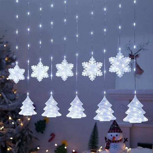BLOOMWIN Weihnachtsbeleuchtung Fenster Lichtervorhang Innen, 2M 160 LED Weihnachtsdeko Fenster Beleuchtet, Schneeflocken Weihnachtsbaum Lichterkette Deko, Weihnachten Fensterbeleuchtung, Kaltweiß USB