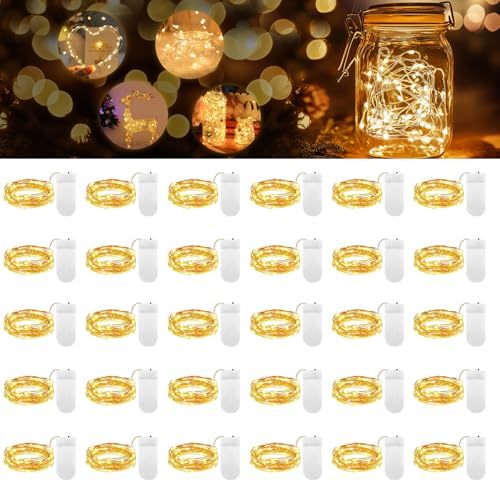 【30 Pack Batteriebetriebene LED Lichterketten】Die mit 2 CR2032-Batterien (im Lieferumfang enthalten) betriebene 1M-Mikro-Lichterkette mit 10 verbesserten, energieeffizienten LEDs eignet sich sowohl für die alltägliche Dekoration als auch für die Weihnachtsdekoration. Die dünnen Kupferdrähte und die kleinen LED-Glühbirnen werden Ihrem persönlichen Raum eine zarte und gemütliche Note verleihen 【Flexibler Silberdraht】Die Sternenmond Lichterkette ist aus einem weichen, biegsamen Silberdraht gefertigt. Einfach in jede Form zu biegen oder auf alles zu wickeln, was Sie wollen, wie Fotos, Regale, Wände, Spiegel, Kunsthandwerk, Möbel, Kränze, Bäume, Äste, Pflanzen, Blumen oder Hochzeitsdekoration 【Wasserdichte Sternenlichter】Die Silberdraht-Sternenlichter sind stromsparend und wärmeisolierend, sie bleiben sicher in der Hand. Sie laufen sehr kühl, kein Grund zur Sorge, dass sie überhitzen und die Dekoration Ihres Hauses beschädigen. 【Sicher zu Berühren】Die LED-Lichterkette ist IP65 wasserdicht und kann in Wasser getaucht werden, drinnen oder draußen verwendet werden, müssen Sie sich keine Sorgen über Wetterschäden machen, nur die Lichterkette ist wasserdicht, der Batteriepack ist nicht wasserdicht 【Breite Dekorative Verwendungen】Unser 30er Pack Lichterketten ist perfekt für Dekorationen und die Schaffung einer romantischen Atmosphäre am Valentinstag, Weihnachten, Halloween und anderen wichtigen Festen. Also folgen Sie einfach Ihrem Herzen, um Ihr Leben zu DIY, wo immer Schlafzimmer, Terrasse, Tischdekoration, Partys, Hochzeit, Einmachgläser. Hoffentlich umgibt unsere Lichterkette alle Ihre wichtigen Momente.