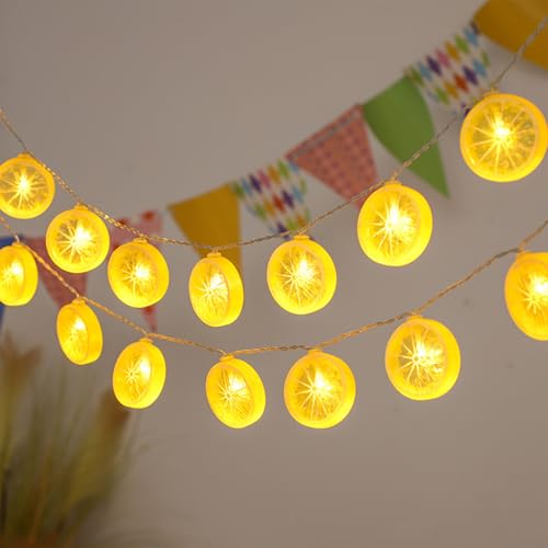 KOBOKO Lichterkette Zitronen Deko, 3M 20 LED Zitronendeko-Lichterketten, Lichterkette Batterie, Party Lichterkette, Dekorative Lichter für Schlafzimmer, Party, Karneval, Innen und Außen (Gelb)