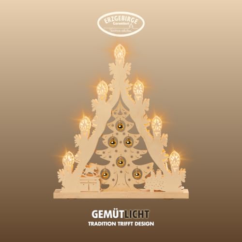 HOCHWERTIGE HOLZKUNST - Diese Lichterspitze aus dem Erzgebirge, ist die perfekte Holzkunst für Ihre Weihnachtsdeko. HERGESTELLT IN DEUTSCHLAND - Unsere Lichterspitze verbindet erzgebirgische Tradition und modernes Design, mit einer Fensterbeleuchtung made in Germany IDEALE FENSTERBELEUCHTUNG - Dieser liebevoll gefertigte Holzschwibbogen für Ihre Fensterbank kreiert eine weihnachtliche Atmosphäre im Innenbereich und ergänzt perfekt Ihre Weihnachtsdeko. ERSATZLAMPE INKLUSIVE - Eine Ersatzlampe ist im Lieferumfang enthalten, um sicherzustellen, dass Ihr Lichterbogen immer strahlt und Sie langanhaltende Freude an Ihrer festlichen beluechtung haben. WEIGLA - Entdecken Sie unsere Marke weigla, mit exklusiven, hochwertigen Lichterbögen, beleuchteten Fensterbildern und Holzdekorationen aus dem Erzgebirge