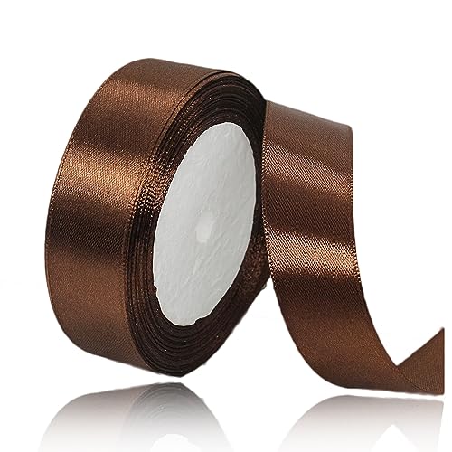 Geschenkband Kaffee 25mm Breit, 23 Meters Satinband Braun Geschenkbänder Stoff Schleifenband Dekoband zum Geschenkverpackung, Bastelarbeiten, Geburtstag und Hochzeitsdekoration