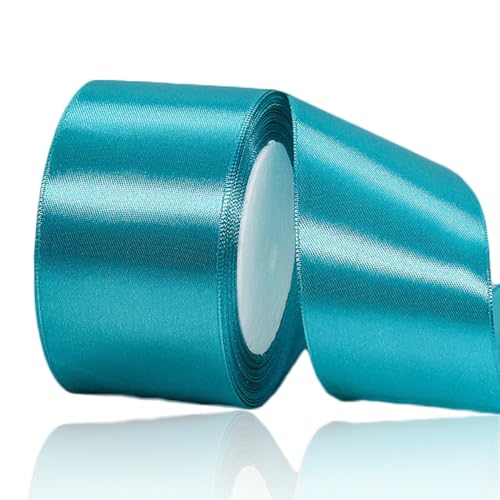 Satinband Türkis Blau 50mm Breit, 23 Meters Geschenkband Türkis Satinbänder Stoff Schleifenband zum Geschenkverpackung, Weihnachten, Bastelarbeiten, Geburtstag und Hochzeitsdekoration