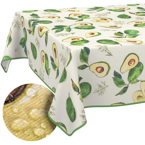 Tischdecke Stoff abwaschbar Tischtuch Tafeldecke pflegeleicht Lotuseffekt schmutz- & wasserabweisend für Indoor Outdoor Tischdecke 100x140cm mit Saum (Eingefasst) Avocado