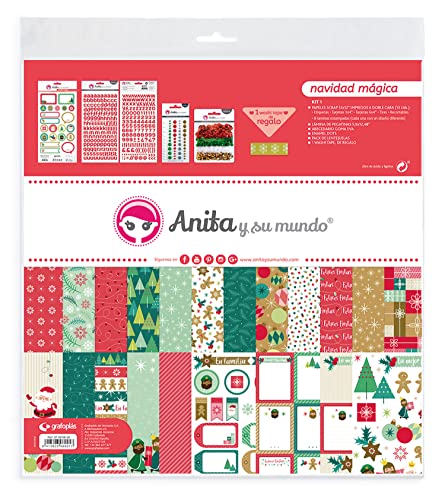 Anita y Su Mundo 37080650 Weihnachts-Scrapbooking-Set, 13 bedruckte Papiere, Aufkleberfolie, Alphabet, Enamel Dots, Pailletten und Washi Tape, magische Weihnachtskollektion