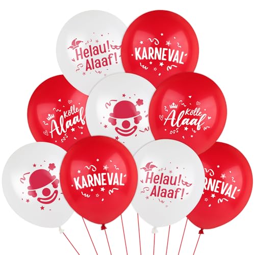 BOFUNX 24 Stück Rote Weiße Köln Karneval Luftballons 12 Zoll Alaaf Luftballons für Kölle Alaaf Karneval Deko Fasching Deko