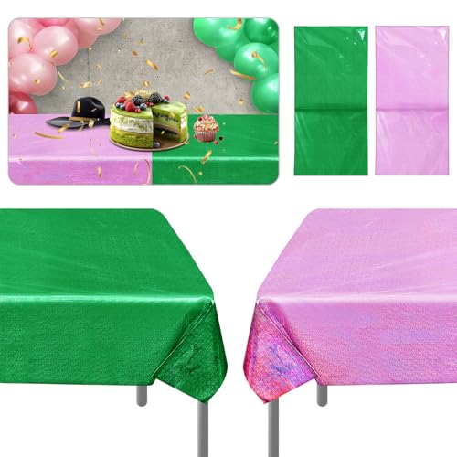 2 Stück Wicked Party Tischdecke, 2,7x1m Rosa & Grün Glänzende Tischdecken Wicked Themen Party Dekorationen für Cosplay Geburtstag