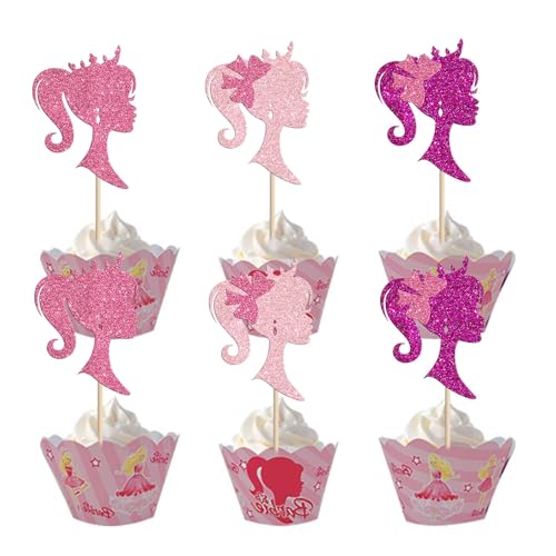 24 Stück High Heels Lippenstift Kuchen Tortendeko, Prinzessin Cupcake Toppers, Prinzessin Tortendeko Geburtstag Mädchen, für Mädchen Geburtstag Party Kuchen Cupcake Deko Supplies