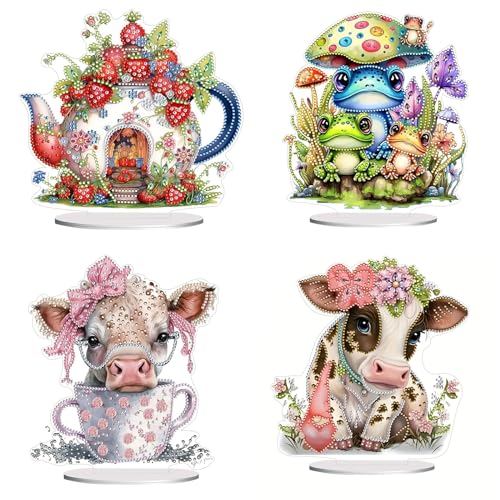 CXINLky DIY Diamond Painting Tier Tisch Deko, 5D Diamant Painting Tischdeko, Diamant Malerei Stehend Kunst Set, Ornamente Geschenke für Anfänger Zuhause Dekoration-4 Stuck-C