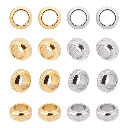 DICOSMETIC 60 Stück Edelstahl Runde Perlen Großes Loch Perlen 10x8mm Runde Metallperlen Metall Glatte Perlen Fass Abstandshalter Perlen Europäische Perlen Zur Die Schmuckherstellung Bohrung: 5 mm