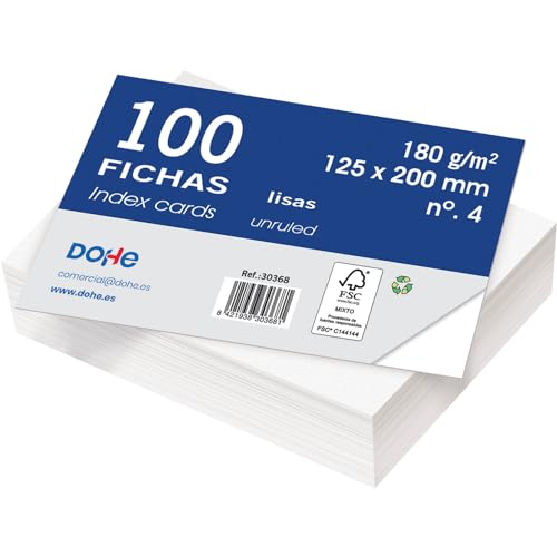 Dohe Glatte Karteikarten aus Karton (100 Stück) - Karten zum Schreiben von Notizen, Größe 20 x 12,5 cm, 180 g/Nr. 4, Büromaterial - Weiß