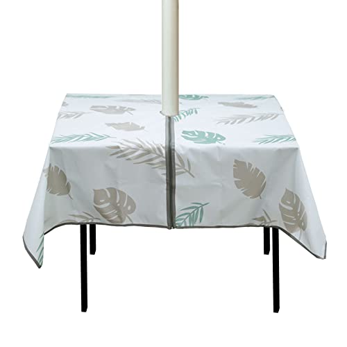 Tischdecke für den Außenbereich, wasserdicht auslaufsicher Tischdecke mit Reißverschluss, Schirmloch für Terrasse, Gartentisch