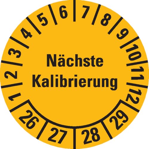 Dreifke® Prüfplakette Nächste Kalibrierung 26-29, gelb, Dokumentenfolie, Ø 20mm, 36 Stück