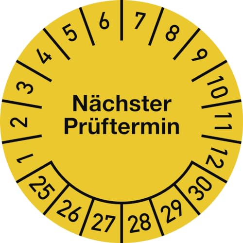 Dreifke® Prüfplakette Nächster Prüftermin, 25-30, gelb, Folie, ablösbar, Ø 15mm, 60 Stück