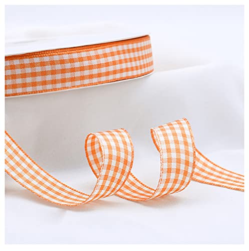 Egurs Kariert Geschenkband 45M/roll Gingham Band Vichy Dekoband Stoffband Bastelband Büffelband Ribbon für Geschenk Verpacken, Partydeko, Hochzeit Weihnachten Dekoration Orange 15mm