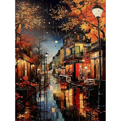 HEIBAGO Malen nach Zahlen für Erwachsene, DIY Stadt Szenerie Malen nach Zahlen Bausätze für Anfänger, Malen nach Zahlen Bausätze Ölfarbe nach Zahlen Straße Kunstwerk Bilder für Wanddekor,40 * 50cm