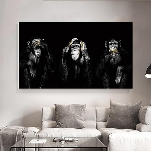 HOLEILUCK Moderne schwarz-weiße Tiere, Orang-Utans, Affen, Leinwandgemälde, Drucke, Wandkunst, Bilder für Wohnzimmer, Heimdekoration, 65 x 140 cm/26 x 55 Zoll, mit Rahmen