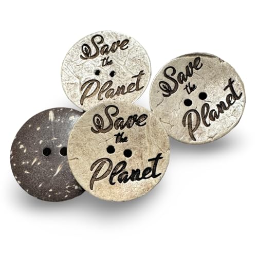 10 Stück echte Kokosnussknöpfe natürlich Knopf mit Schrift Save the Planet 2 Löcher zum Annähen (25mm)