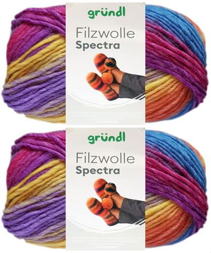 2x100 Gramm Gründl Filzwolle Spectra aus 100% reiner Schurwolle inkl. Anleitung für Filzschuhe (08 Mystery Multicolor)
