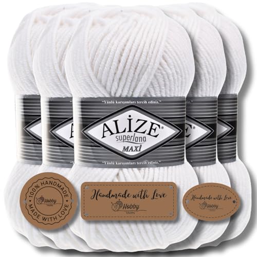 Hobby YARN 3x Etikettenlabel mit Alize Superlana Maxi Wolle Premium 1x100g als Set, Yarn, Garn, Strickgarn, Einfarbig, Baby zum Häkeln Stricken Kleidung Schals (207)