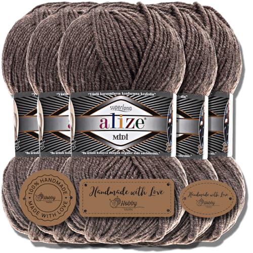 Hobby YARN 3x Etikettenlabel mit Alize Superlana Midi Wolle Premium 5x100g als Set, Yarn, Garn, Strickgarn, Einfarbig, Baby, zum Häkeln, Stricken, Kleidung, Schals (652)